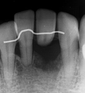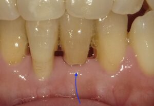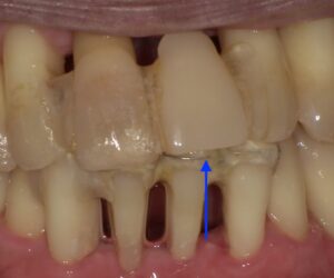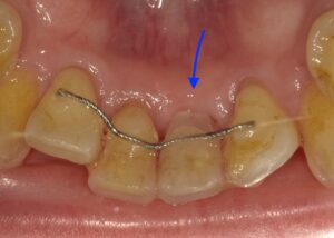 画像の矢印の歯が歯周病が進行し暫間固定で経過を見ていました。