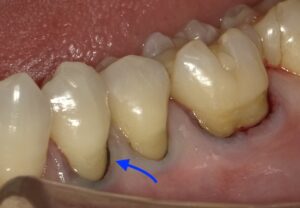 矢印の黒い線は歯肉圧排の糸になります。