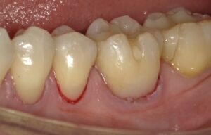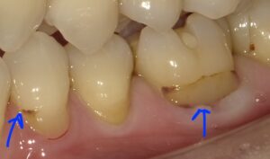 歯肉圧排(しにくあっぱい)といい歯茎の中に糸を入れて歯茎を押し下げ、歯と