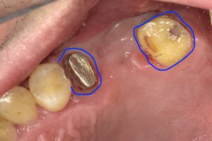 しかし上の画像の右の青丸部分は神経のある歯に