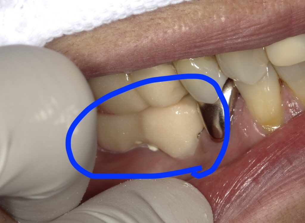 ○で囲ったのが仮歯です。プラスチックですので