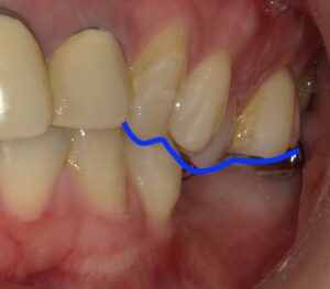 奥歯が下方向に落ちてきている状態が多く見受けられます。
