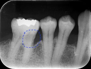 レントゲンでも囲った部分が黒く虫歯であることが